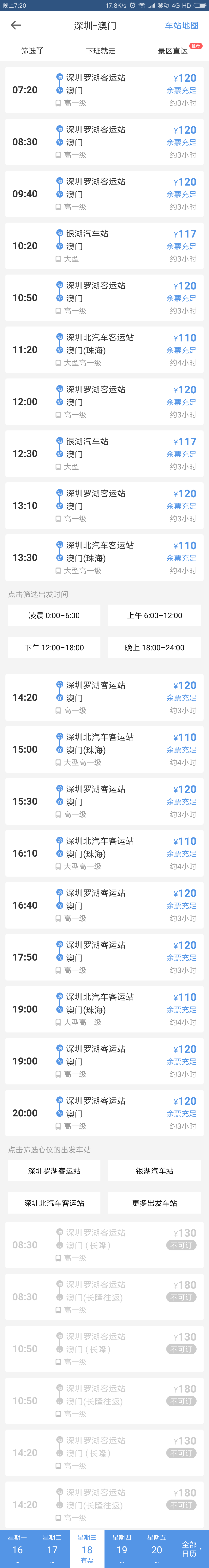 大巴:深圳各客运站至珠海拱北口岸班次与价格。